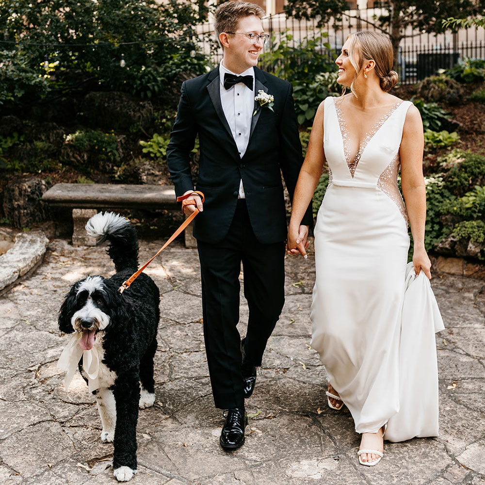 Over the years we have discovered the absolutely pawfect length fur photos, walking down the aisle and simply being safely near your Pet Attendant at all times. 3 feet! No more odd wrapped leashes around your arm in photos or pups walking too far ahead down the aisle.